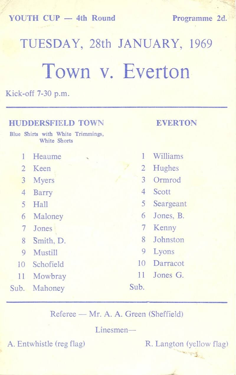 | 31 Jan 69 | Home - Goodison Park | Huddersfield Town | 4th Round Replay | 3-2 | Jones G 2, Johnson D | Unknown |