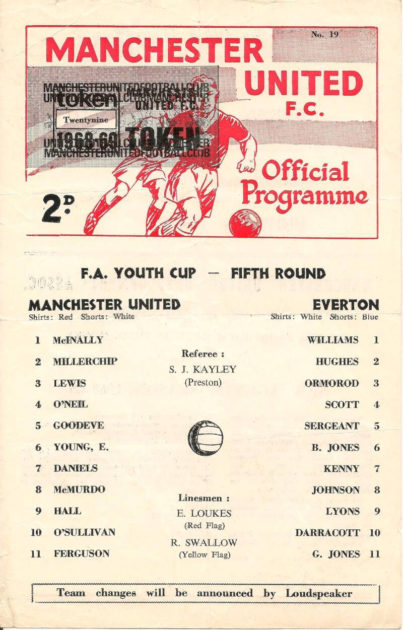 EVERTON YOUTH: Williams; Hughes, Ormrod; Scott, Seargeant, Jones (B.); Kenny, Johnson, Lyons, Darracott, Jones (G.) Substitute (from) Moran, Crampton, Smith, Wilson.