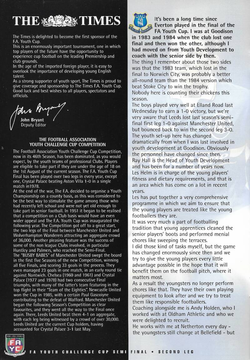 | 7 Apr 98 | Home - Goodison Park | Leeds United | Semi-Final 2nd Leg | 2-1 | Regan C, Jevons P | 6,509 |