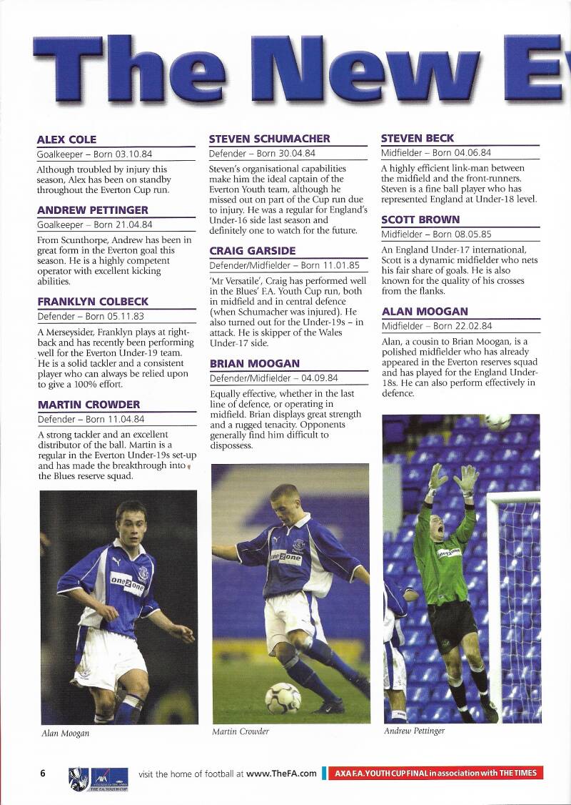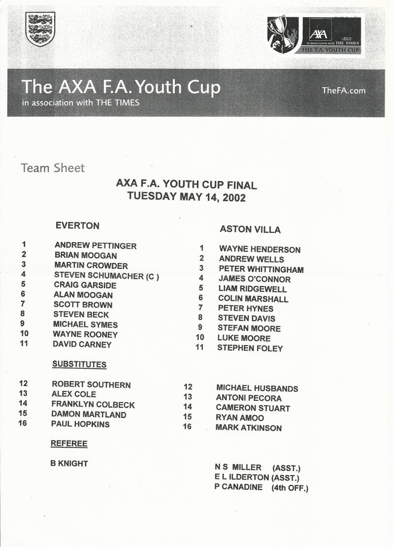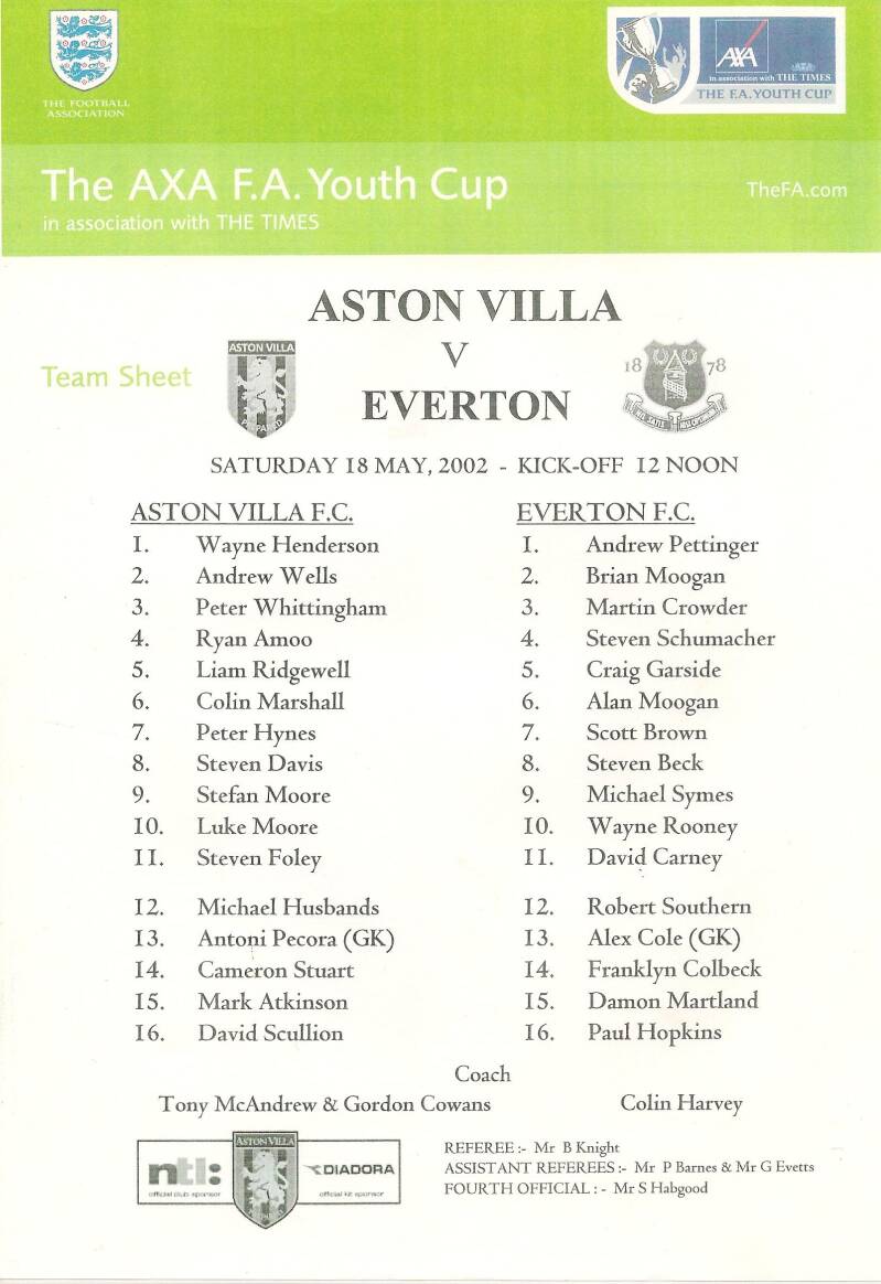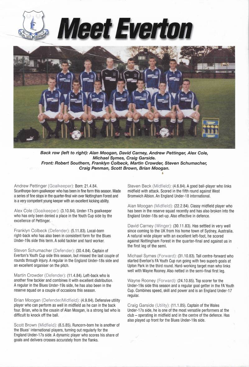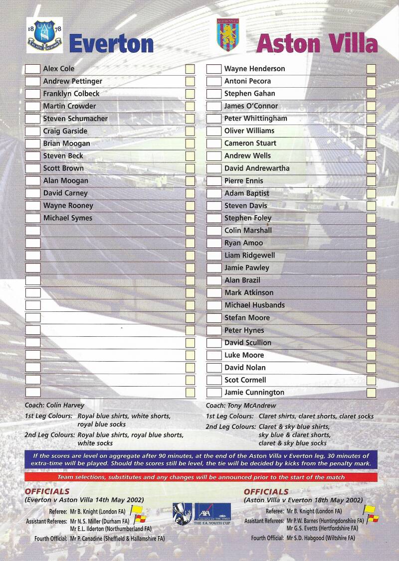 Carney, B Moogan, Garside and Schumacher as well as Symes and Rooney all played exceptionally well. Roll-on Villa in the Final and get down to Goodison to see an exceptionally talented side, who promise great things in the future. Colin Harvey has produced an extremely tight-knit, neat, well-organised and balanced team of great promise.