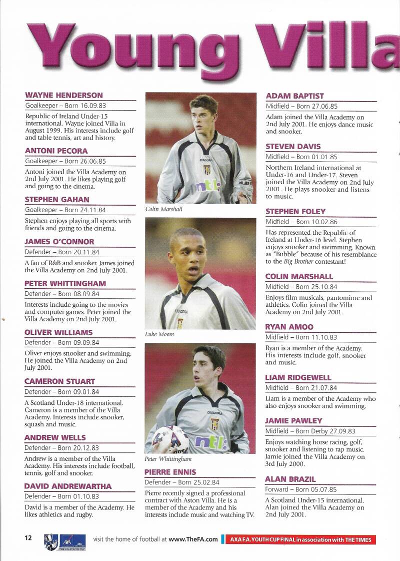 | 18 May 02 | Away - Villa Park | Aston Villa | Final 2nd Leg | 1-0 | Brown S | 18,651 |