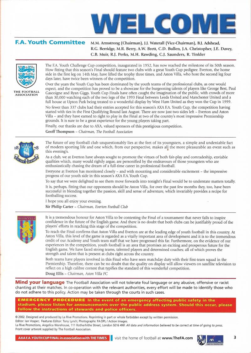 | 14 May 02 | Home - Goodison Park | Aston Villa | Final 1st Leg | 1-4 | Rooney W | 15,280 |