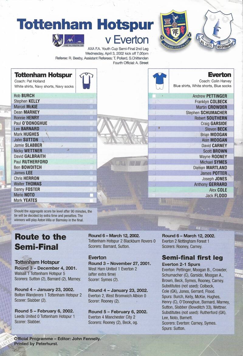 | 27 Mar 02 | Home - Goodison Park | Tottenham Hotspur | Semi-Final 1st Leg | 2-1 | Carney D, Symes M | 3,706 |