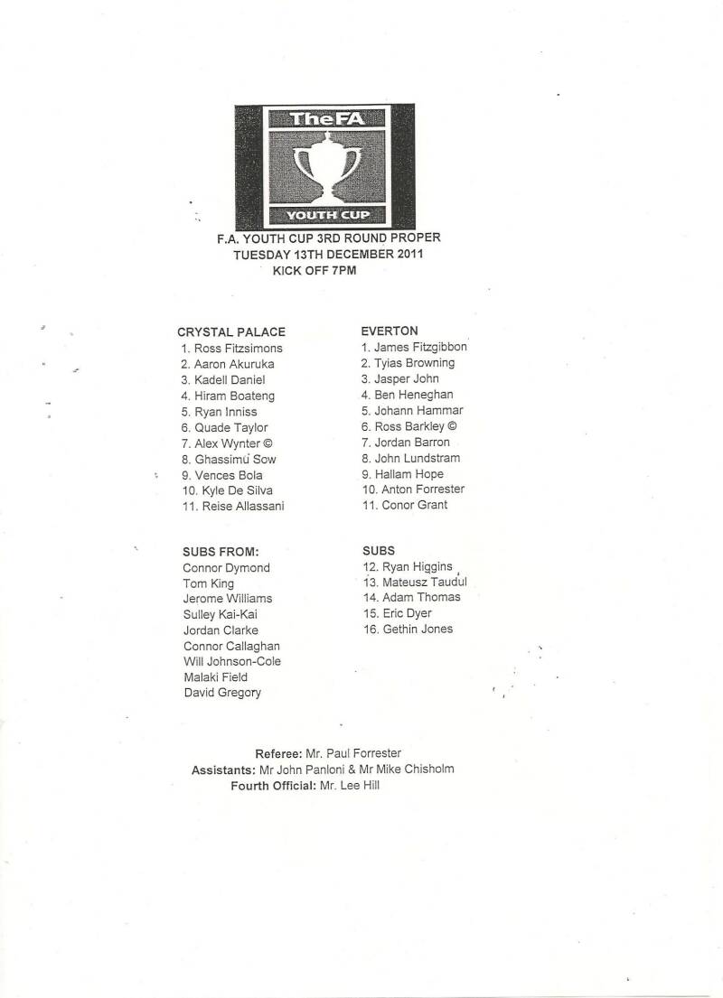 | 13 Dec 11 | Away - Selhurst Park | Crystal Palace | 3rd Round | 2-1 | Barkley R, Forrester A | 1,085 |