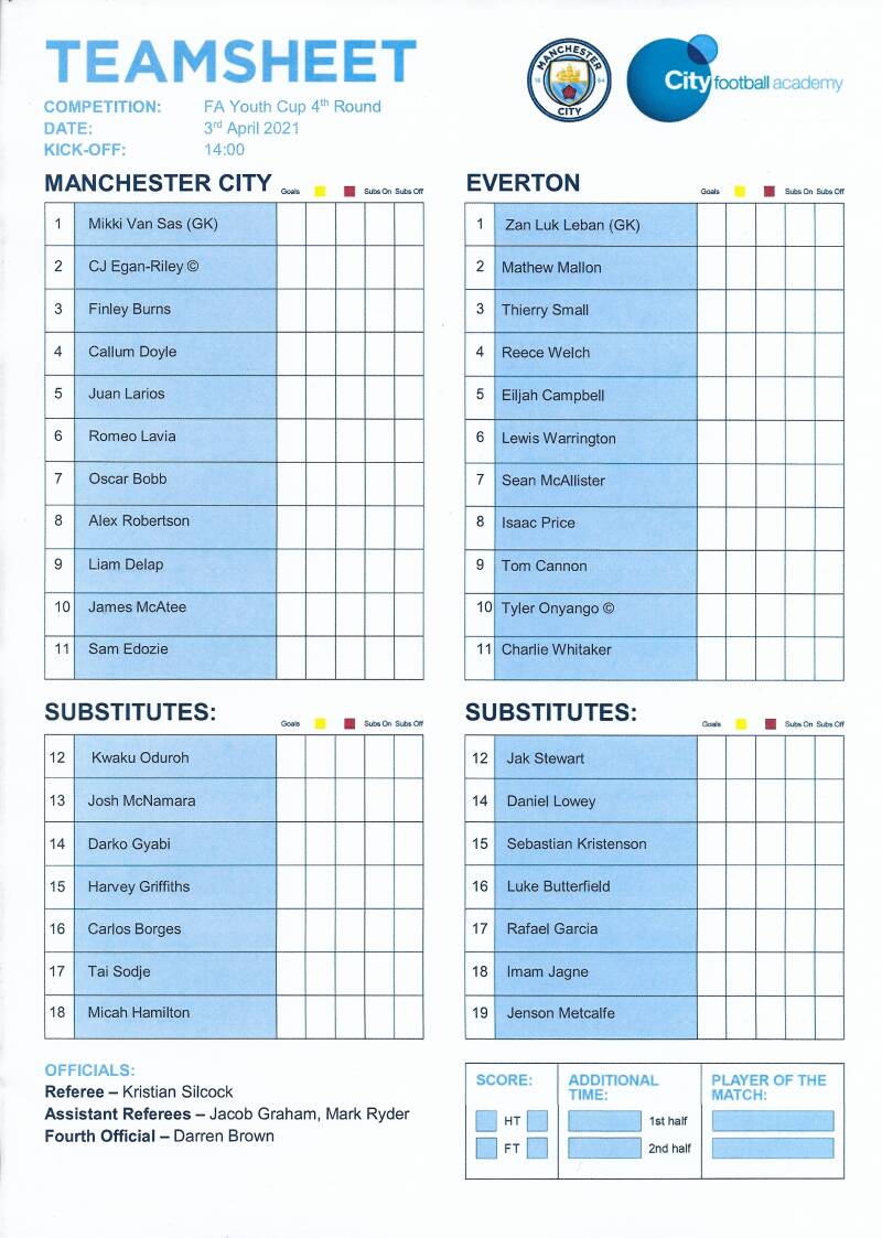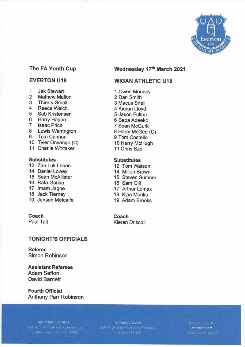 Everton U18s: Leban, Mallon, Welch, Campbell, Small, Warrington, Butterfield, Mills (78' Dobbin), Whitaker, McAllister, Cannon (71' Garcia).